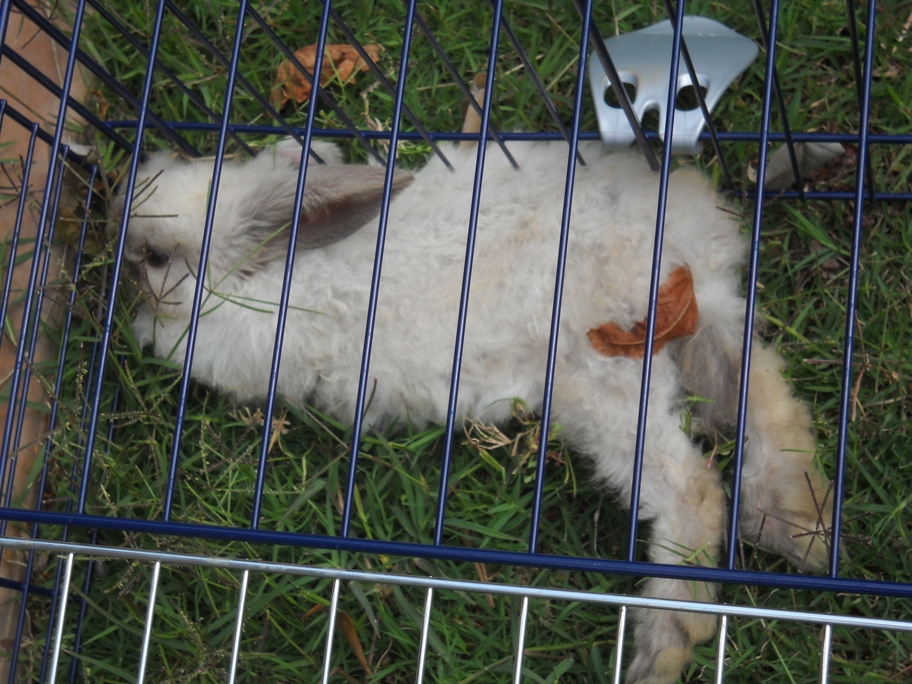Rabbit remained on my verandah for the day. When I got home, I read up on rabbits and I really don’t want to give this rabbit back! I’m going to try and get them to let me keep him/her. He/she needs a same-sex companion, and the cage it is in is totally inappropriate, it needs natural ground and mosquito mesh etc. I was feeding it beans, which I’ve just read are a no-no so I hope I haven’t already killed the poor little mite.
