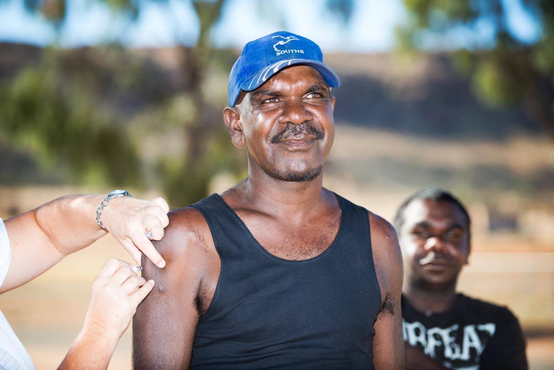 A few months ago we (two colleagues and I) did a vaccination drive at one of the town camps. We had been approached by Department of Health and Aging (DoHA – the Federal department), asking if we had any way of providing them with photographs of indigenous people having their recommended vaccines, because they needed new material for the development of posters. We approached this particular camp, where I know some people well, and they agreed.