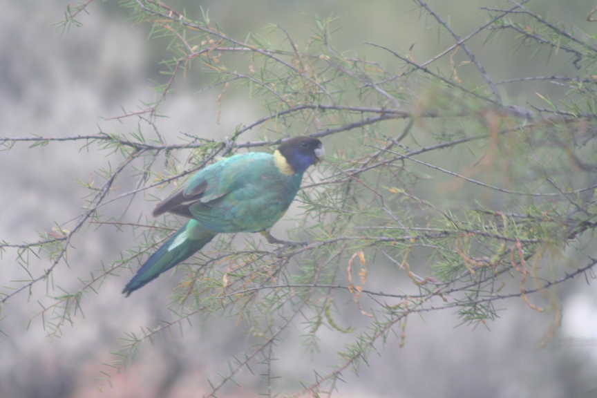 A gusty, cool and overcast morning with ring necked parrots feasting at the back door.