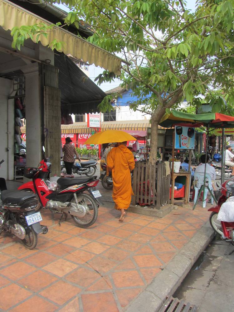 It was a relaxed and interesting hour or more.  When I suggested that I would like to help them with the purchase of a sewing machine some conversation ensued in Khmer, which Rav then translated to me.  Rather than take my money, they wanted to take me to the shop and choose a machine with me.  All in agreement, the children were left at home and we boarded Rav’s tuk tuk through the crowded streets to a local market across town.  Rav somehow managed to manoeuvre his tuk tuk through the gridlock of cars, bikes, trucks and pedestrians outside the huge market.  He instructed us out before moving into a tiny parking space and the four of us headed into the heaving covered market.  Through crowded rows of clothing, material, kitchenware, fruit, vegetables, fresh meat, jewellery, past sewing machinists who Rav obtained occasional directions from, we weaved in and out of the undercover alleyways, then back out onto a small laneway and over the road, under the protective leadership of Rav all the way, where we found the shop we were looking for.