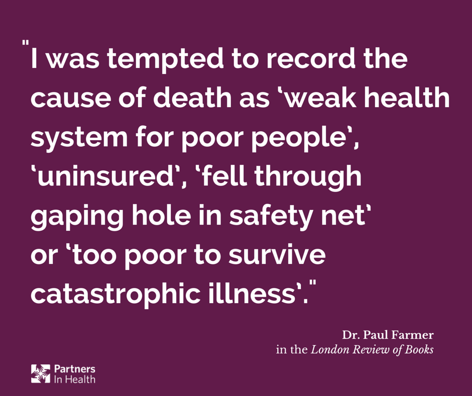 While it’s not health systems that save populations, but healthy and equitable economies allowing a decent standard of living for most if not all, I still like this quote by Dr Paul Farmer. He is the founder of Partners in Health (PIH), a Non-Government Organisation who work in the poorest parts of the world, having begun from humble beginnings in Haiti after he visited there as a medical student in the 1980s. As well as being a Professor at Harvard and working out of the Brigham and Women’s Hospital in Boston, he is the Director of PIH, a physician, medical anthropologist and humanitarian. PIH are now one of the best known international medical NGOs, known especially for their philosophy of health being a right for all, which sees them bringing high quality, modern medicine, to poor populations in places such as Haiti, Rwanda and prisoners in Russian jails. Tracy Kidder’s biography of Dr Farmer, “Mountains Beyond Mountains” goes into more detail and is worth a read. Partners in Health work in collaboration with Medecins Sans Frontieres, for example the Tuberculosis Control Guidelines which guide MSF’s day to day TB work were written in partnership between both NGOs.