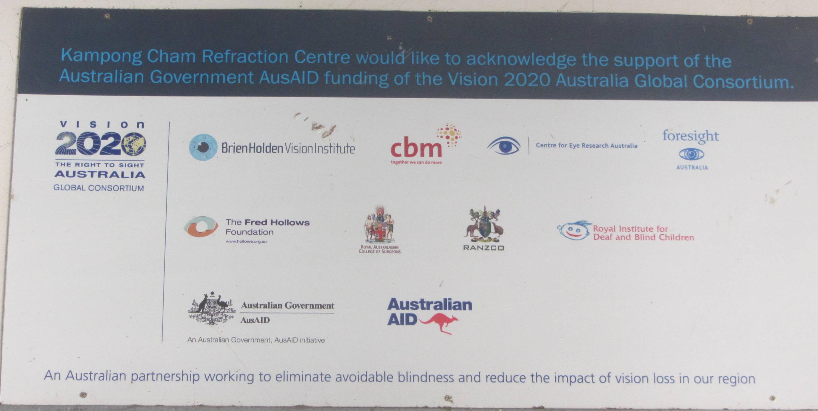 The visit to the Ophthalmology Unit at the hospital was interesting. A lot of light hearted banter in the crowds waiting around the elevated outdoor tropical corridor around the edge of the building kept us entertained. The patients from yesterday’s operations came out of the ward together and lined up to have their vision tests and consultations. One woman was in a lot of pain, accompanied by a young adult son who attentively applied eye drops and ointment to her eye amid moans of pain beside me. Various people sat in the broken plastic chair in one corner of the building while the nurse doing vision tests stood at a door at the other end, pointing to the Snellen Chart as patients motioned with their hands which way the three legs of the E were pointing. One young woman stood up after her vision test and an elderly woman standing nearby said something which elicited laughter from the crowds. Chom translated for me that “she asked her why you do like that?”, confused at the girl sitting in the chair and waving her arms in different directions. Watching people try to navigate use of the “glasses” for their visual acuity test was equally funny and it was a really humourous couple of hours, tinged with sadness when the vision test on Mini showed that she could literally not see the hand being waved right before her face.
