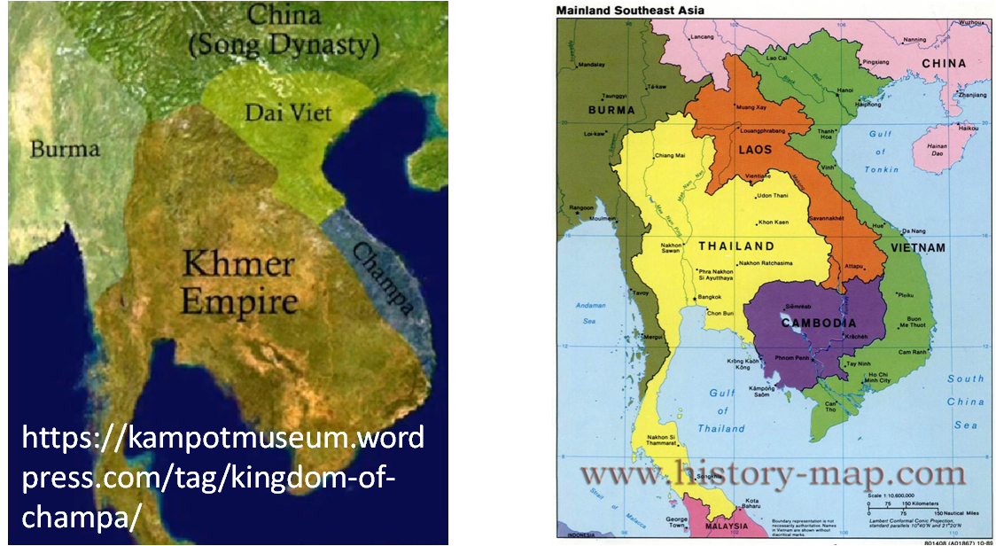 The history of Cham people is long, involved and complicated, so I cannot do it justice here except to provide a brief history as I understand it.  They probably travelled to what is now the central coast of Vietnam sometime before 600BC, from Malaya or Borneo.  Developing from smaller tribal groups and growing out of a preceding Kingdom known as Lin Yi, the Kingdom of Champa, as seen in the historic map above,  existed from around the 7th century AD until it was completely annexed by Vietnam in 1832, finally rendering the Cham a stateless people.  At this time many, following their last King, fled to Cambodia.  Here they settled in communities across the Mekong Delta but most predominantly in the province of Kampong Cham, which literally means “Cham Landing”  or “Cham Harbour”.  Today most of Cambodia’s Cham population live in the provinces of Kampong Cham and Tboung Khmum.