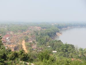 One final visit along the way is a tiny wooden shack sitting precariously on the riverbank underneath the mountain where tourists go for their spiritual retreats.  We picked up some noodles and soy sauce for the family along the way.  It’s almost two years now since this mother lost her three year old when he drowned in a pond at the base of the mountain.  Today she has a tiny newborn baby.  I wonder how I can possibly translate my newly acquired health promotion skills as a Child Health Nurse in this environment.  In Australia Child Health Nurses working with newborn babies focus on promoting and/or monitoring safe sleeping, smoke free environments, breastfeeding, maternal mental health, growth and development.  In this environment the baby is underneath a mosquito net on bamboo slats through which you can see the Mekong waters flowing below.  She looks small – perhaps premature or perhaps small for age?  There is no way to know.  There is no way to weigh her.  She has never been, and may never be, weighed.  Without appropriate translation I can’t do very much at all.  My tuk tuk is reluctant to translate my question about breastfeeding but it seems hopeful as it was a home birth and the family have no money, that Mum has not been targeted by any formula companies who tend to work out of private maternity clinics.  A pot of rice is cooking on an open fire as smoke bellows around the open room, the only saving grace being the massive gaps in the floors and walls allowing some dilution of the smoke.  I ask my tuk tuk friend to explain to Mum that smoke is dangerous to the baby.  I wonder how the house has not already burned down.  I don’t know how to address anything else this baby deserves as much as any other baby in the world, so we leave our meagre offerings and promise to visit again.
