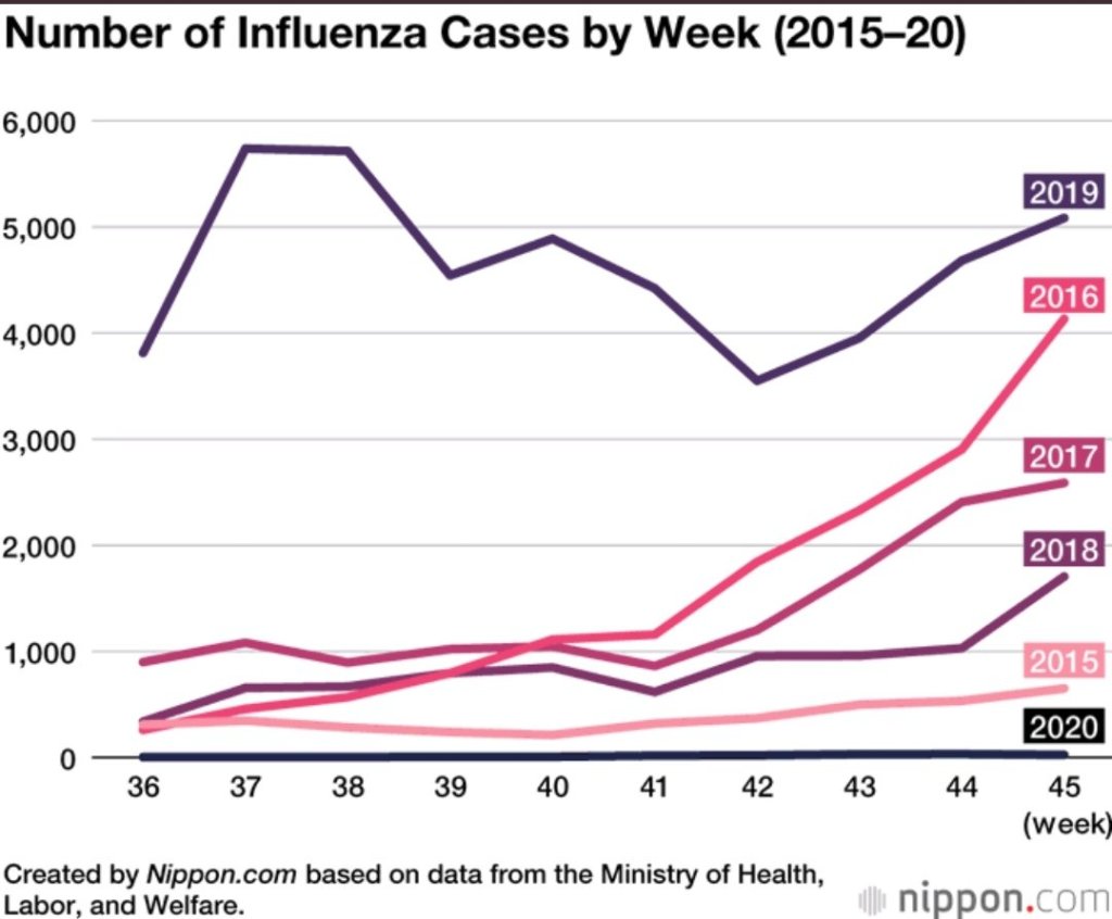 In the space of a single year, after circulating in the human transmission chain for millennia in a cyclical pattern of “good season”/”bad season”, influenza has all but completely disappeared from the globe. Since early 2020 specific nations continue to be hailed for their successful lockdown policies keeping populations safe from Covid-19, whilst other nations have failed due to alleged poor lockdown implementation or “bad behaviour”. Herd immunity is not considered a possibility and frequently described incorrectly as a murderous strategy rather than the natural endpoint to any epidemic. Yet prior to the record breaking development of a SARS-CoV-2 test made available in January 2020 under dubious circumstances, the below happened in 2019. Are these patterns connected in some way to the Covid-19 pandemic?
