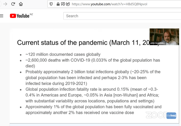 This British Medical Journal Webinar titled “Is Zero Covid Possible?” goes for two hours. For those with limited time, I definitely recommend spending ten minutes with the world’s most esteemed Infectious Disease Epidemiologist, John Ioannidis, from the 31 minute mark. Other presenters however, are equally worth hearing (not all of them align with my own anti-lockdown stance, it is worth hearing how they justify lockdowns as a public health measure).