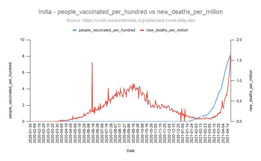 Note the scale of this graph for India – they have risen to 1.5 Covid related deaths per million. Based on PCR testing alone, this low number is likely to include a significant number of false positive results in people dying from other causes. With 850 Covid deaths out of 27,000 total deaths per day (including 1200 TB deaths and 2000 dysentery deaths everyday), the pressure they are now under, courtesy of wildly exaggerated headlines, is to lockdown even harder.
