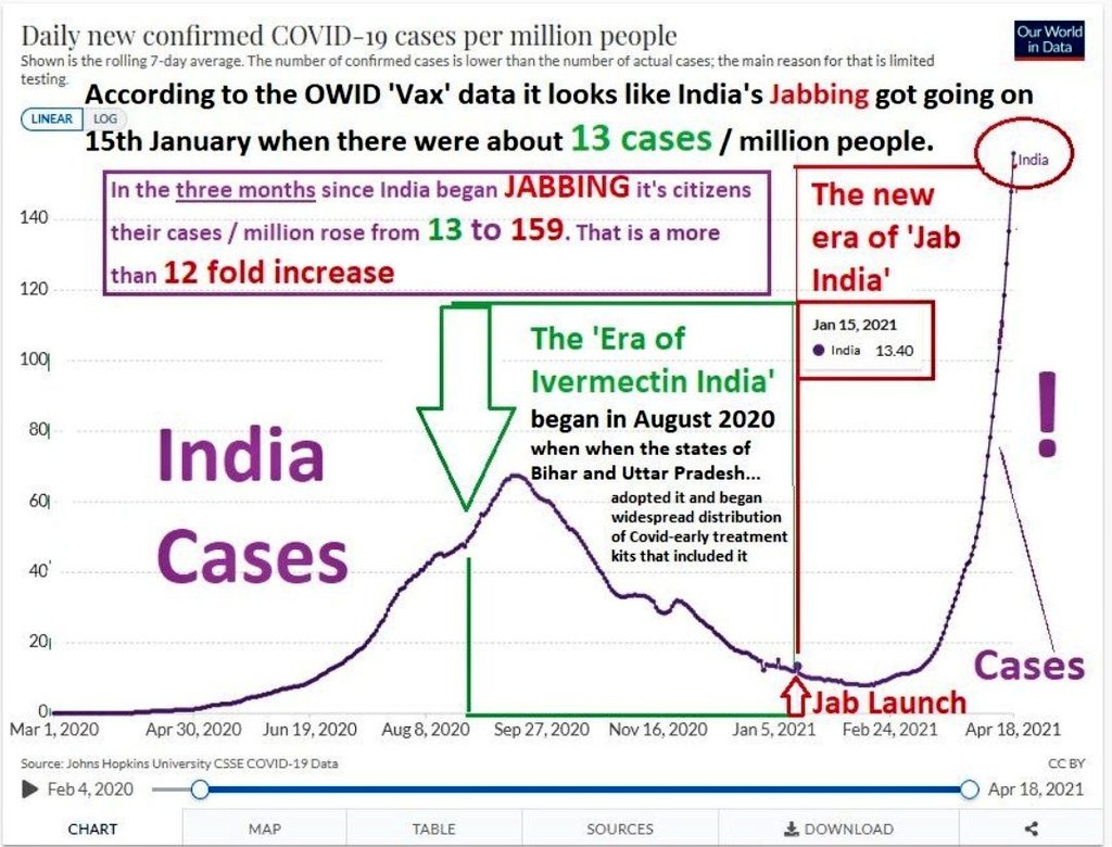 The mainstream media’s reporting on the ‘COVID crisis’ in India has clearly been governed by a global approach to messaging that appears to aim at ramping up fear of ‘new variants’ and coerce compliance to vaccination during a period of increasing resistance, both in India and abroad. However, as somebody who lived in India for 8 years in total until December 2019, and as the fundraiser for a food bank in Bihar that has been alleviating the hunger caused by lockdowns [1], I have daily contact with people in India as well as some context for the figures being presented amidst the ongoing alarm.