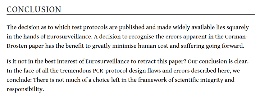 This test has been described as “the biggest lie and medical fraud ever perpetrated and mandated on an unwitting public”, forming the basis of the biggest class action law suit the world has ever seen. The Corona Ausschuss in Germany has expanded into an international collaboration involving thousands of lawyers with medico-legal and human rights interests and representing many thousands of plaintiffs. The conclusion made by the external peer review of the RT-PCR test to detect SARS-CoV-2 in November 2020 revealed 10 major scientific flaws “at the molecular and methodological level”, with consequences for false positive results.