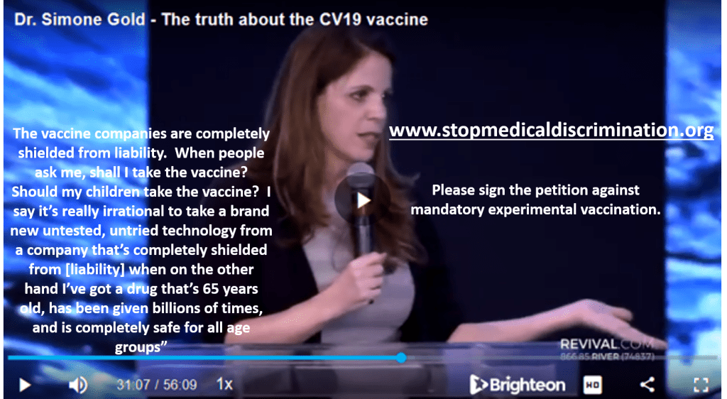 Board-certified Emergency Physician Dr Simone Gold who was dismissed by two hospital employers after speaking out against the Covid-19 corruption she experienced first hand, co-founded America’s Frontline Doctors. She speaks powerfully to a church congregation here about