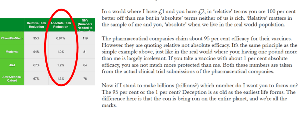 Extremists with unprecedented global power are stopping anyone who actually becomes unwell with Covid-19 disease from receiving effective treatment. Instead, all 7 billion humans in the world – children now included despite extremely low risk profile and alarms sounding from many medical scientists – have been deceived into believing an experimental vaccine with an absolute risk reduction rate of around 1% is the best protection.