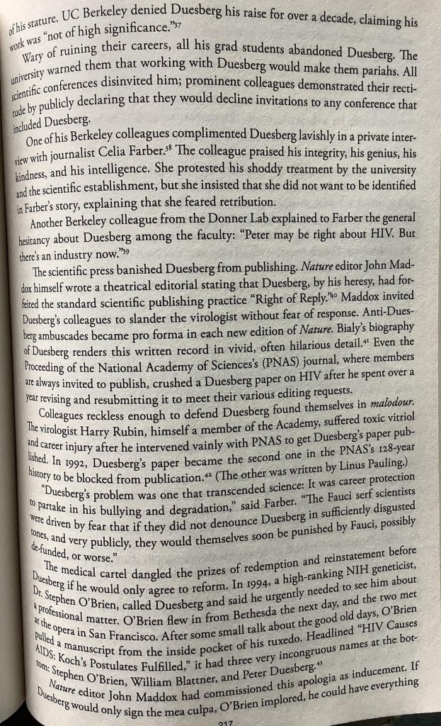 I was under the assumption that Dr Wolfgang Wodarg was the first to experience this type of high level assault, after he challenged WHO’s pharmaceutical corruption during Swine Flu in 2009. Actually Professor Duesberg preceded Wodarg by more than a decade. He was described as “among the world’s most known and respected scientists” until he dared to challenge Dr Fauci. This is how the Covid Cancel Culture evolved. From the power of a criminal gangster.