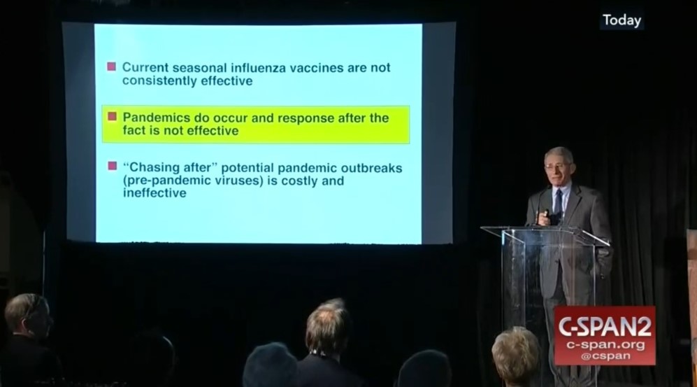 White House pandemic gangster-in-chief, Dr Tony Fauci appears to be well aware of the public health basics which contradict his New World Order ideas. His ten minute 2017 presentation on pandemic preparedness and response at the National Museum of Natural History starts at around 17 minutes and tells a very different public health tale than the one he chooses to sprout today.
