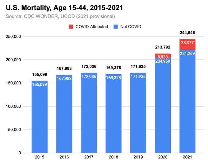 The USA, for example, is now presenting data that shows more than 40% increase in mortality of the population aged between 15 and 44 years old since 2019. European data is reportedly showing similar excess mortality. This devastation is a direct result of incompetent, inhumane and unreasonable public health impositions including lockdowns and the mandating of unsafe medical products.
