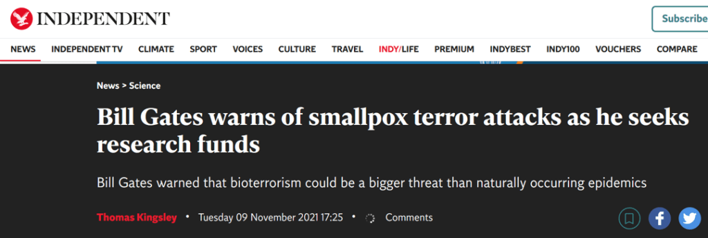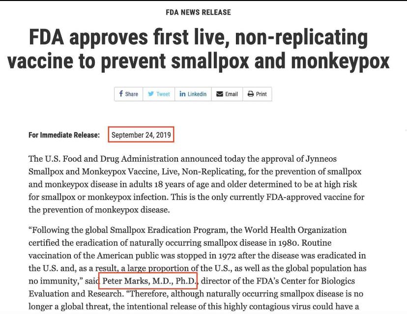 In 2019 the FDA approved a Smallpox / Monkeypox vaccine for human use. Why? Smallpox was officially eradicated from the world decades ago, and yet it is spoken of frequently by the world’s leading pandemic / bioterror soothsayer.
