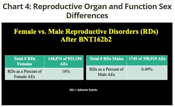Despite the array of concerns for male reproductive health, the Pfizer trial documents show that in comparison to males, mRNA injections cause 2.5 times more severe adverse events to women, and three times more risk to female reproductive organs and their function, according to Report 37 at Daily Clout. Dr Wolf discussed these harms with report author, orthopaedic surgeon Dr Robert Chandler, in late August.