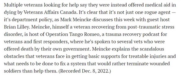 From: Offering euthanasia to struggling veterans is government policy: Full Comment podcast.