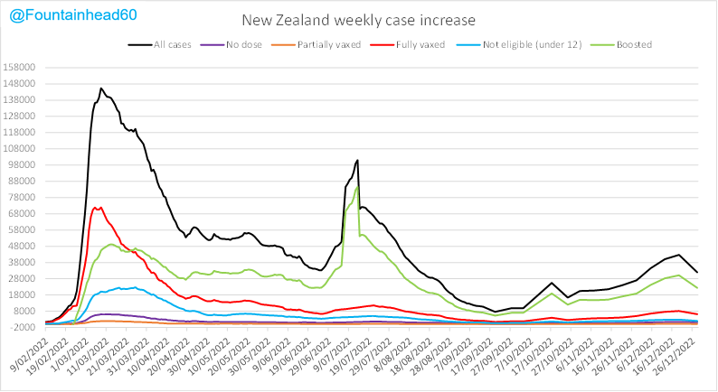 In an age of censorship and intimidation, skilled people use social media anonymously in order to protect their livelihoods whilst getting the message out. Fountainhead is one such analyst. Here’s their latest, taken from the New Zealand Ministry of Health data, with my rusty interpretation of what it means.