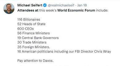 The World Economic Forum are completely brazen about their plans: eating insects, owning nothing, transhumanism, etc. They are conceited enough to imagine that we will sit back and take it. This shows how detached they are from reality and drunk on their own power. Governments clearly answer to people like Klaus Schwab now, and not their own people. We have a list now, of those who attend WEF. We don’t need to know every individual, but we know who enough of them are.