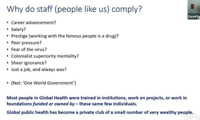 Biowarfare isn’t being dumped upon us via the skies, but via a network of fearmongering, powerful profiteers, funded largely by our own money as described by ex-pharmaceutical executive and researcher, Sasha Latypova. The way it plays out on clinicians is described well by Dr Pierre Kory (“what would I have done if they offered me $1 million to shut up? I’d still be here. I can’t say the same for many of my colleagues“). This is all enabled by a global network of public health employed staffers who should – (many do, but many do not) – know better, as described by Dr David Bell.