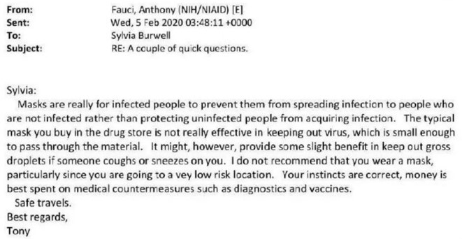 The mixed messaging on face masks from Anthony Fauci, a medical doctor and immunologist with no subject matter expertise in PPE, was closely mimicked by politicians including here in New Zealand throughout the pandemic. The chaotic and theatrical nature of this advice has highlighted the absurdities directing the pandemic response. In February 2020, courtesy of the “Fauci Emails“, we know he was providing advice based on established knowledge about the use of face masks.