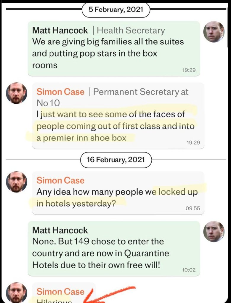 Matt Hancock, Secretary of Health in the UK during the Covid fiasco, has expressed his great disappointment at having his WhatsApp messages leaked to the public. Here’s why. These egomaniacs are in charge over populations across the globe.