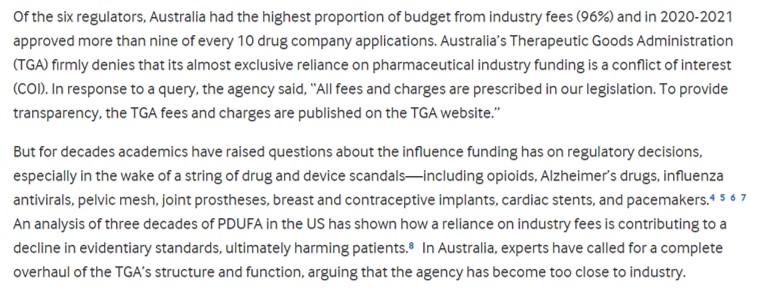The TGA happens to be 96% funded by the pharmaceutical industry according to a June 2022 British Medical Journal article.
