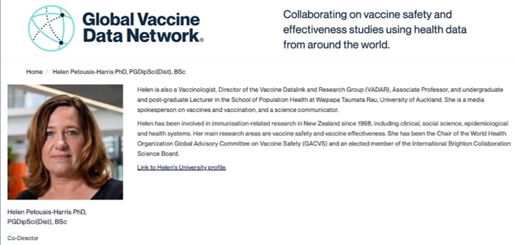 New Zealand vaccinologist Dr Helen Petousis-Harris actively promotes Covid-19 vaccinations, including those for pregnant women. As Co-Director of the Global Vaccine Data Network, she has direct ties to pharmaceutical giants Fondation Mérieux and the Gates Foundation. Similarly, IMAC is connected to pharmaceutical funding via the World Health Organisation’s Vaccine Safety Net.