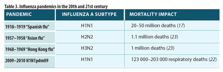 The 1918-1919 Spanish Flu occurred prior to the antibiotic era. It is widely accepted that bacterial pneumonia was the predominant cause of death during this pandemic, as shown in a comprehensive study co-authored by Dr Anthony Fauci in 2008. This is likely why the three pandemics after the Spanish flu, all occurring after the discovery and prevalent use of antibiotics, had low mortality with little to no influence on total deaths.