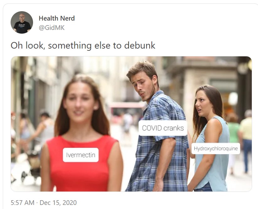 Long before many of the now-available studies had been conducted, Gideon tweeted that he intended to “debunk” Ivermectin. This is a very strange stance to take at the same time as claiming an objective and scientific perspective. Again, is Gideon receiving corporate money to spin a line that favours corporate profits?
