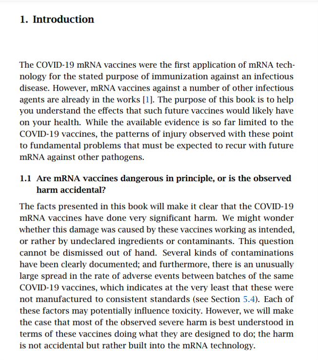This book argues that these harms had to be expected from first principles of immunology. Furthermore, they are not limited to the COVID vaccines alone; instead, they are inherent in the mRNA technology as such. We must therefore expect that future mRNA vaccines against other viruses or bacteria will be similarly toxic. mRNA technology will never be safe to use for vaccination against any infectious agent.