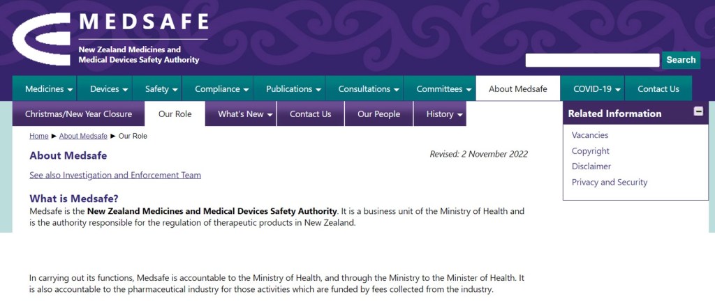 Medsafe states on its own website, that it is “also accountable to the pharmaceutical industry for those activities which are funded by fees collected from the [pharmaceutical] industry”.