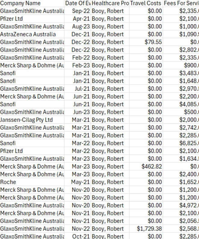 Following the broadcast attention focused on payments received by mainstream expert Professor Robert Booy, a panelist defending the vaccines. Researcher and former Big Pharma exec Aussie17 shared the results of a search on Disclosure Australia, which revealed Booy had received thousands of dollars in payments from multiple pharmaceutical companies in the years 2021 to 2023. A similar controversy erupted in the UK recently when it was revealed four high profile TV doctors who pushed the jab also received payments from Big Pharma, which were never disclosed to audiences by legacy media outlets during the ‘pandemic’. The revelations underscored the importance of transparency in public health discussions and cast doubt on the impartiality of the mainstream expert opinions presented.