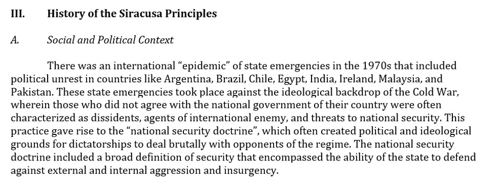 The Siracusa Principles, written to protect citizens against government overreach in the name of safety, have been abandoned as history repeats.