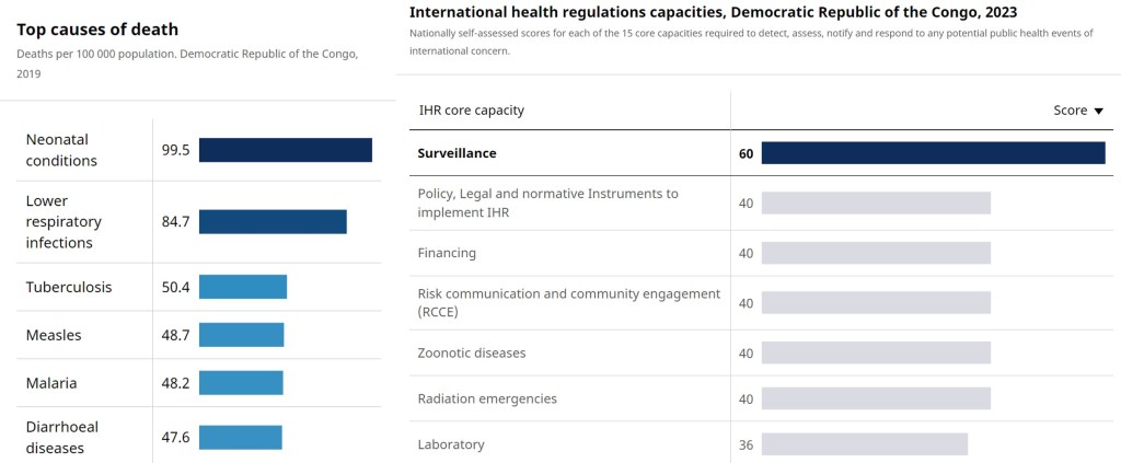 In a stark illustration of embedded corruption, pandemic preparedness via the International Health Regulations is prominent in the DRC health system. Resources are being channeled towards surveillance, globalised policy and financial structures, as well as two emergency dashboards (for covid and mpox), seemingly prioritised over the real health concerns of the population.