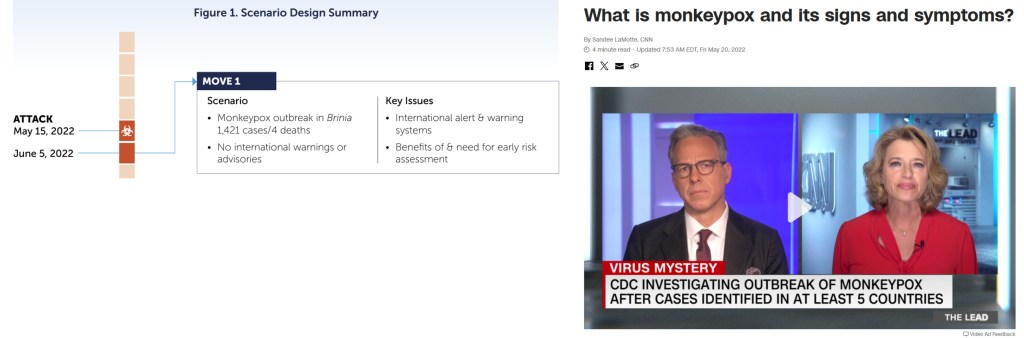 - A reminder about the Nuclear Threat Initiative’s 2021 tabletop exercise predicting a monkeypox pandemic;