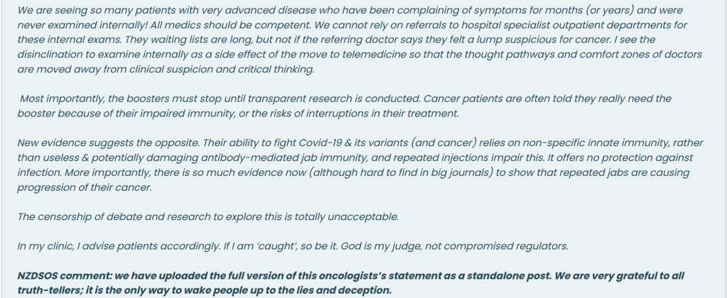 A New Zealand Cancer Specialist wrote this Truth Post at NZDSOS recently.