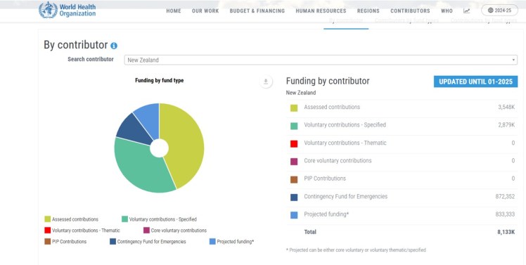 For the two years to January 2025, WHO documents New Zealand contributions of over US$8 million. This does not include any amounts of public money committed to undisclosed contracts with WHO’s partners such as, but not limited to, Pfizer and Moderna. An Official Information Act response from The Ministry of Foreign Affairs and Trade provides unclear details of exactly how much NZ taxpayers contributed to WHO and via which government agencies.