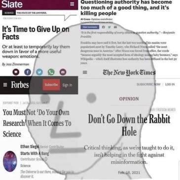 Plato said in The Republic: “If you can no longer name things in public that concern you, then you are in the age of idiocy“. Near the beginning of the documentary Pandamned, this sentence struck a chord with me. We live in the “Age of Silencing Dissent”. If you disagree with Channel 9, NBC, CNN, … More The Ministry of Truth