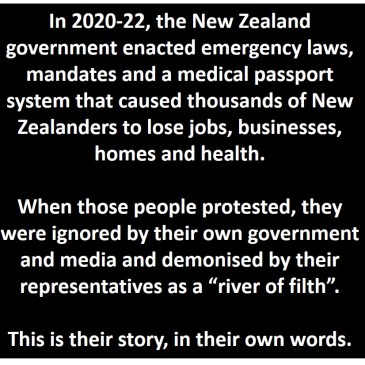 Protestors at the Beehive in Wellington last night, filmed below. According to state propaganda they are violent. Independent journalists at the scene say otherwise. Chantelle Baker filmed footage of police aggression yesterday morning. She also addressed them directly, telling them that she knows what they know. That the mandates are nonsense. That a digital identity … More Sold Down the River